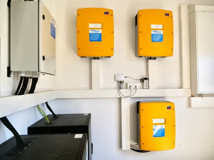 Die Energie, die die Photovoltaikanlage auf dem Dach tagsüber liefert, wird in den Stallungen durch hochwertige Wechselrichter von SMA nutzbar gemacht. Strom, der nicht sofort verbraucht wird, fließt in den BYD-Stromspeicher.